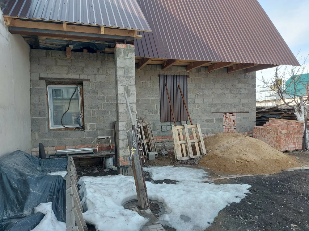 Продам одноэтажный недостроенный дом 81.7 кв.м с баней, гаражом на 2 машины и огородом.