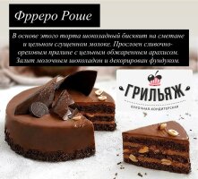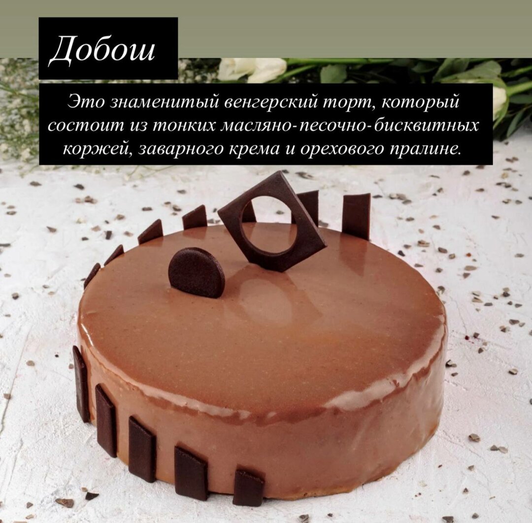 Классика жанра также представлена во всём великолепии: шоколадная «Прага» 🍫, сливочный «Рафаэлло» с арахисом и кокосом 🥥, венгерский «Добош» и роскошный «Ферреро Роше» 🌰, залитый молочным шоколадом.