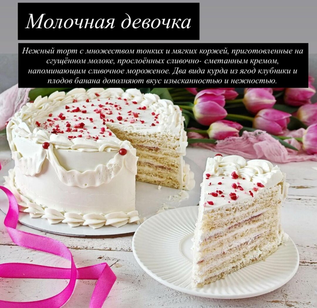 Для взрослого праздничного стола идеально подойдёт «Вишня в шоколаде» 🍒 с ромовой ноткой или «Ночной город» 🌃 на основе сгущённого молока. А торт «Молочная девочка» 🍦 с коржами на сгущёнке и ягодным курдом станет прекрасным подарком для всей семьи 👨👩👧👦.