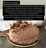 В этом сезоне кондитеры сделали ставку на яркие вкусы и изысканные сочетания 🎨. Витрины пополнились настоящими шедеврами. Например, торт «Юнона (Сникерс)» — это настоящая легенда для сладкоежек 🍫: нежнейший масляный бисквит, сливочно-сырный крем, солёная карамель, орехи и шоколадный ганаш.