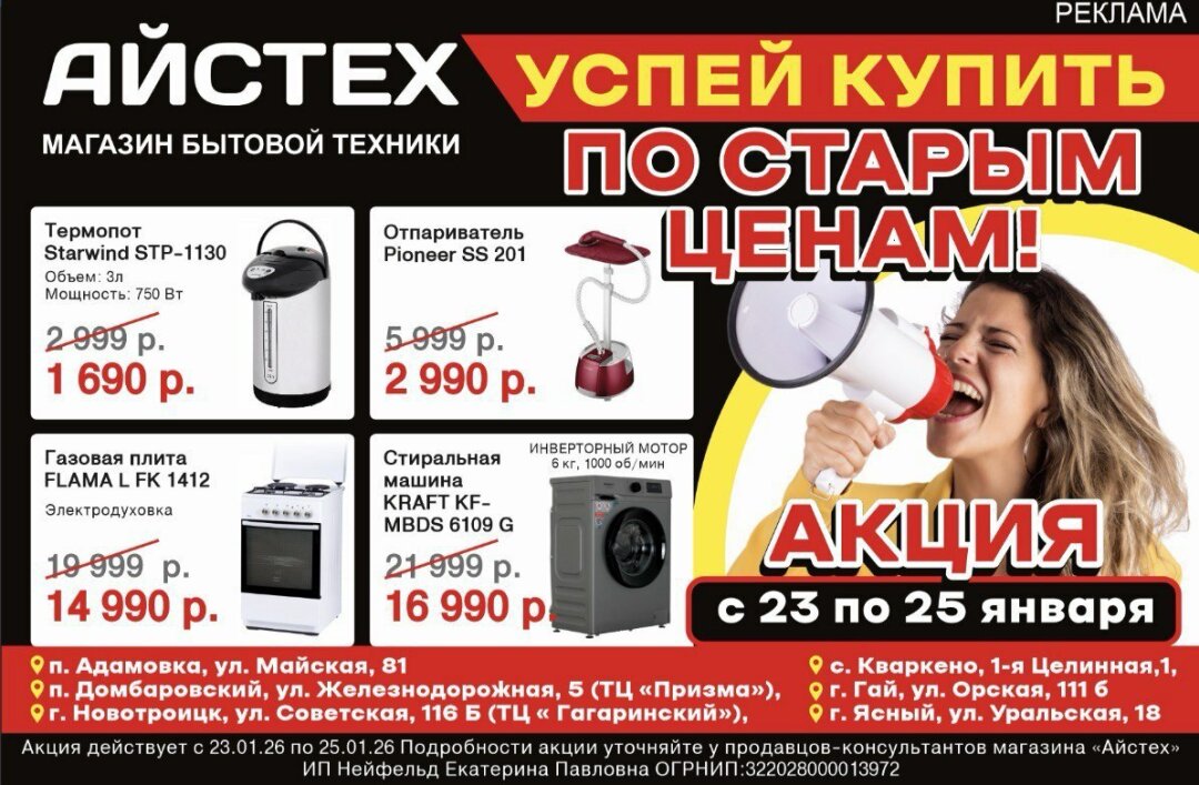 Только с 23 по 25 января скидки до 50% в Гипермаркете «Айстех» в Гай! Ловите момент, пока такие цены не стали воспоминанием.