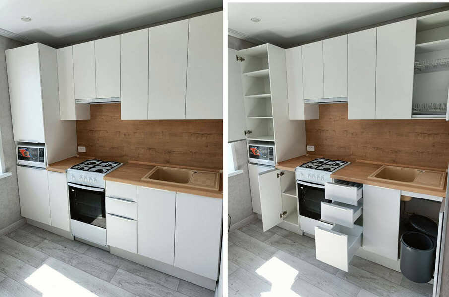 Мы единственная фабрика в Оренбургской области, которая изготавливает не только корпуса, десятки видов фасадов, но и столешницы от пластиковых до каменных.