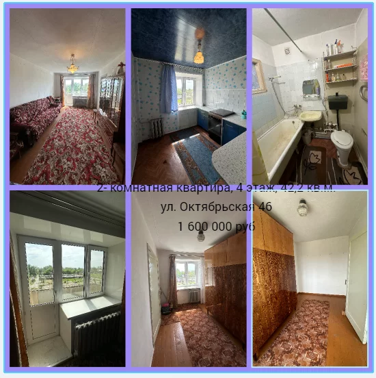 - двухкомнатная квартира по цене однокомнатной квартиры, 4 этаж. Площадь 42,2 кв.м., ул. Октябрьская 46.
