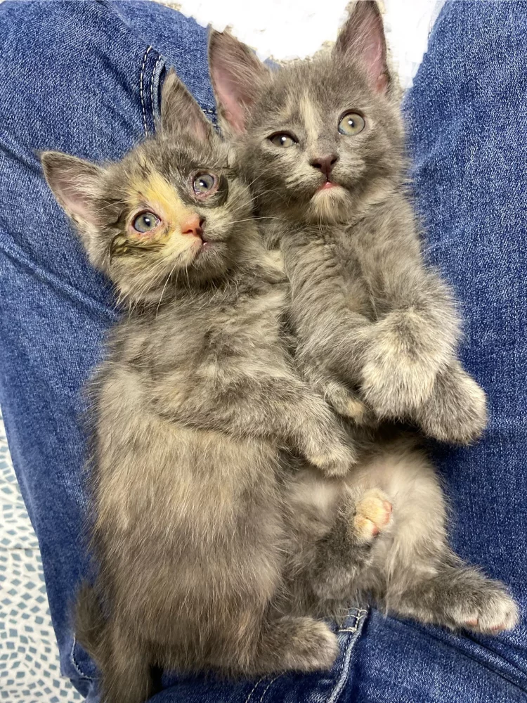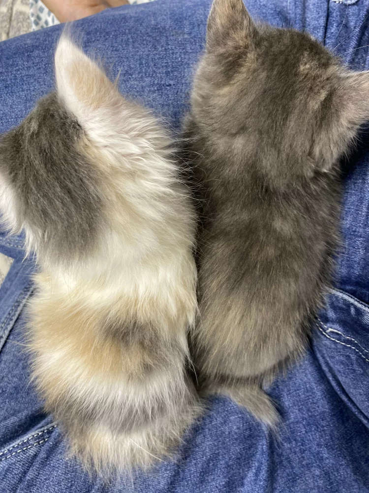 Котята 3 девочки, 2 серенькие, одна бело-серо-рыжая пушистая.