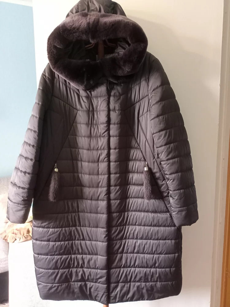 Продам новый женский пуховик с наполнителем из верблюжьей шерсти, с капюшоном с меховой отделкой, 58 р- р, цвет темно- коричневый