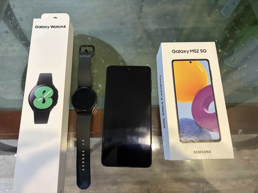 Продам телефон Samsung Galaxy M52 и часы Samsung Galaxy Watch4(40мм). Все в рабочем состоянии, чеки и коробки имеются.