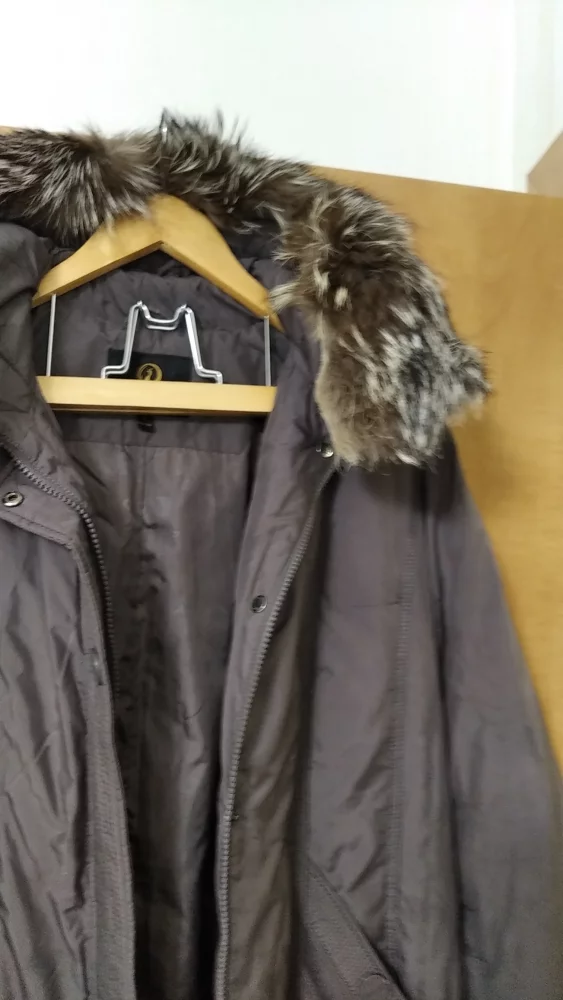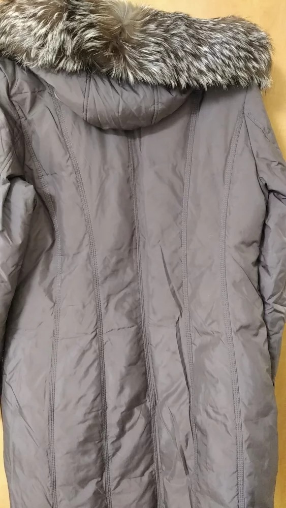 Пуховик женский, р.50, наполнитель пух, есть капюшон, пояс, теплый. Качественный, фабричный