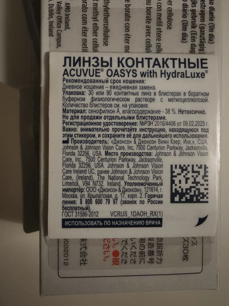 Продам ежедневные контактные линзы acuvue, -2,5 диоптрийВскрытая пачка, 26 штук