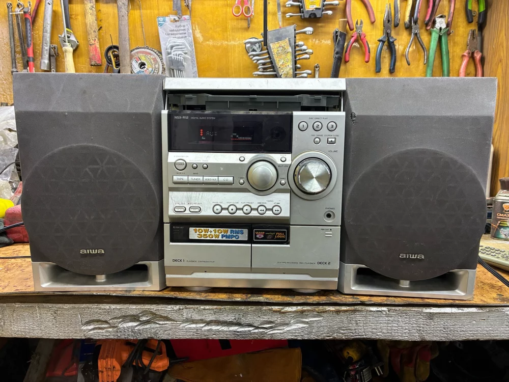 Продам музыкальный центр, слушали только аух и радио, пульт есть, колонки не хрипят.