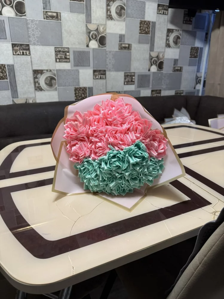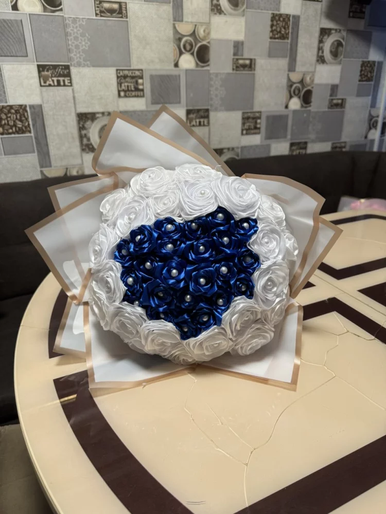 Хороший подарок из атласных лент, яркий красивый букет На любой праздник.Количество цветов в букете цена: