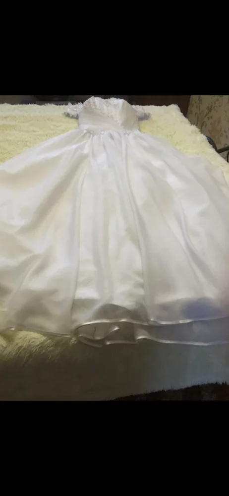 Продаётся красивое свадебное платье, состояние нового, размер от 44 по 48, регулируется шнуровкой по бокам, в комплекте фата и перчатки, дополнительной стирки и чистки не требуется.Рекомендации