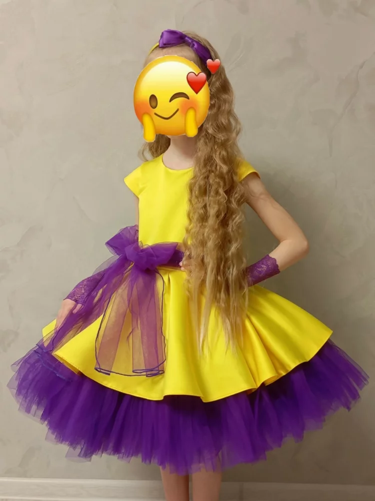 Платье на девочку рост ±116, очень пышное и яркое. В комплект к платью отдам митенки, ободок, бусы и сережки. В поясе платья имеется дефект, который в завязанном банте не виден.Рекомендации