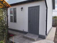 Отстроен навес под машину. Въездная группа и тропинки выложены плиткой.