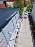 Для полного релакса установлен каркасный бассейн 2м*4м*1м и садовые качели.