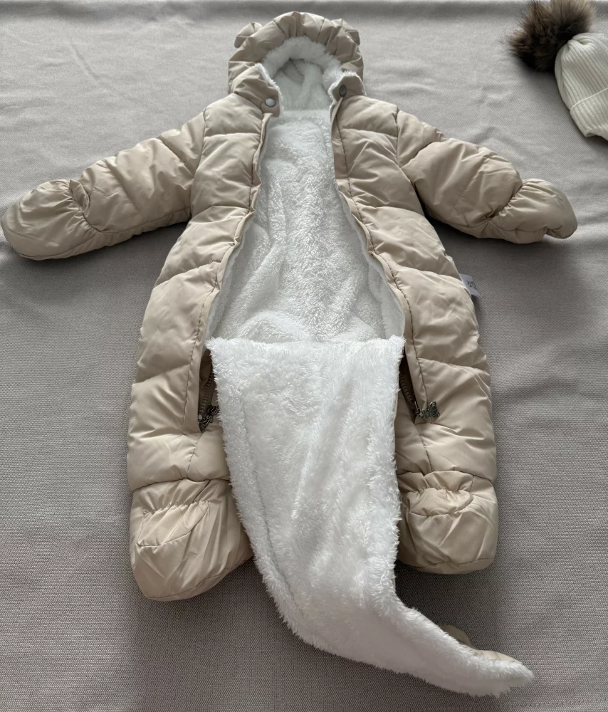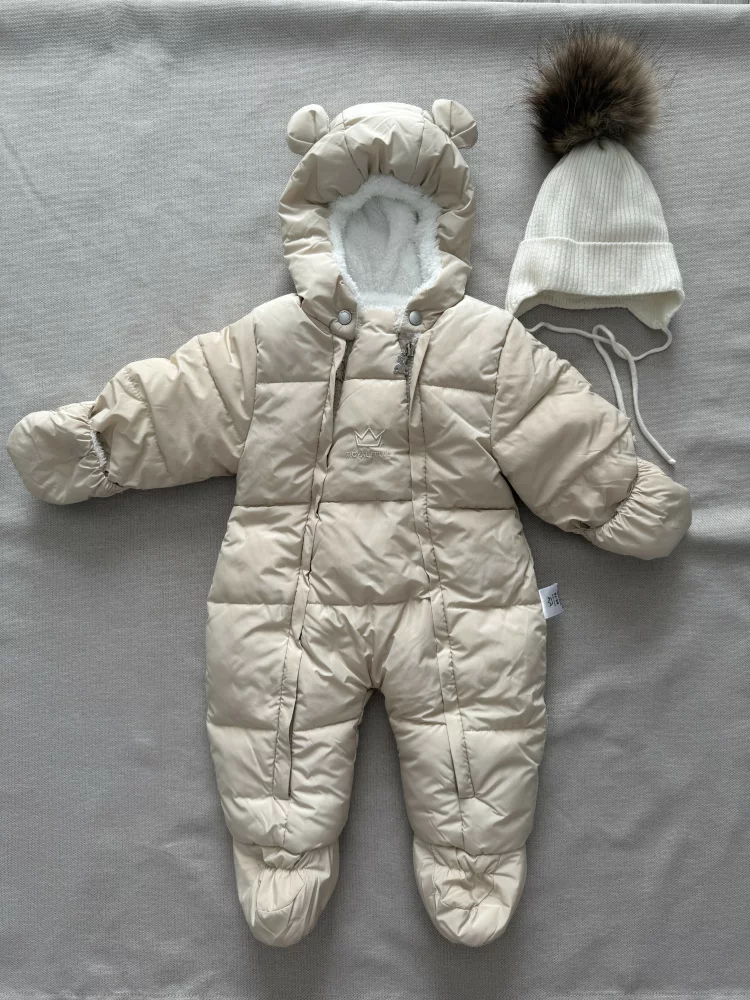 Продам зимний комбинезон, зимняя утепленная шапка в подарок. Вещи в отличном состоянии. Носились 1 зиму. Комбинезон на рост 66-76см. Температурный режим от 0 до -25 градусов. Подклад - кашемировый термофлис по всему комбинезону, плотностью 350 гр. на квадратный метр. Мембранная дышащая внешняя ткань, ветро и водоотталкивающая. На спинке резинка для лучшего прилегания. Ручки можно открывать, отогнув рукавичку как манжет.Шапка утеплена синтепоном. В составе пряжи кашемир, вискоза, ПАН. Подклад из хлопковой ткани. Бубон - натуральный мех енота. Температурный режим, на который рассчитана шапка: от 0 до -20 градусов.