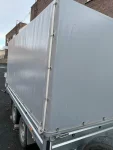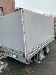 Открываются все борта, каркас тента высота 1500 мм,опорное колесо, кронштейн запасного колеса, запасное колесо с диском, тент делал под заказ откидывается на 4 стороны, пломбировочный трос, дополнительно установлены габаритные огни диодные.