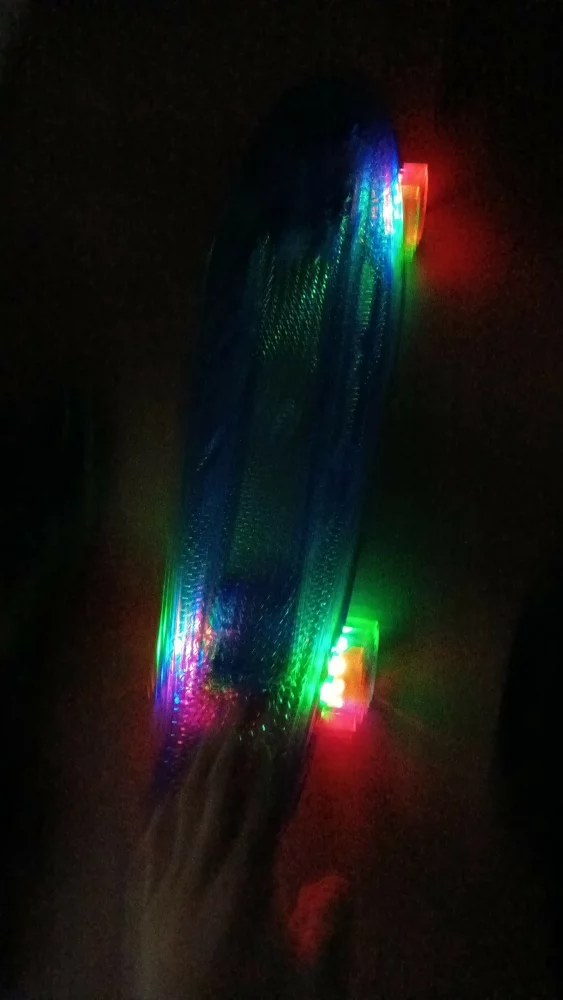 Продам Пениборд-Скейтборд. Состояние идеал.Все колёса светятся разными цветами.Внизу есть подсветка с зарядкой.Цена 1200р торг