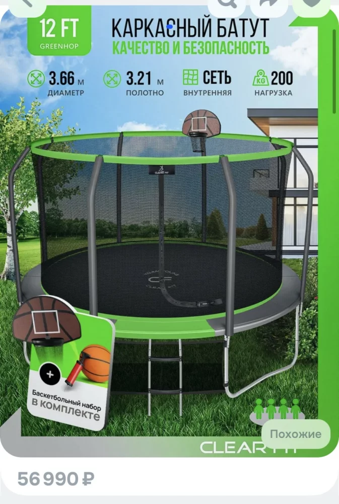 Продам батут, хорошего качества, большой, с лестницей