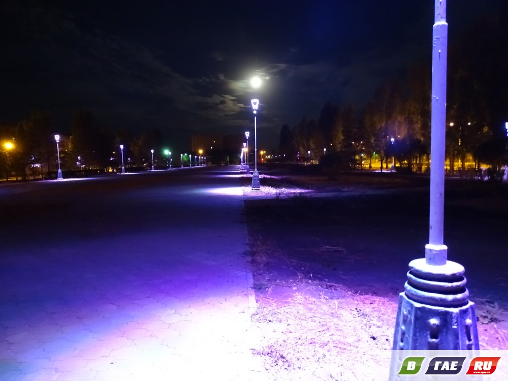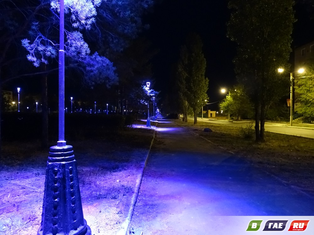 Оказавшись на ночном бульваре, возникает ощущение, будто попал в сказку. Даже не верится, что вся эта красота есть в нашем родном городе. Фонари ровными рядами выстроились вдоль пешеходных дорожек и освещают твой путь, как в сказочной стране. Холодный синий цвет отражается от замощенных тротуарной плиткой дорожек и кажется, что вот - вот, и ты ступишь на ледяную гладь катка. У памятного знака "Выстоявшим и победившим, мертвым и живым" появились новые скамейки. Наш город красив. Красив не только днем, но и ночью.