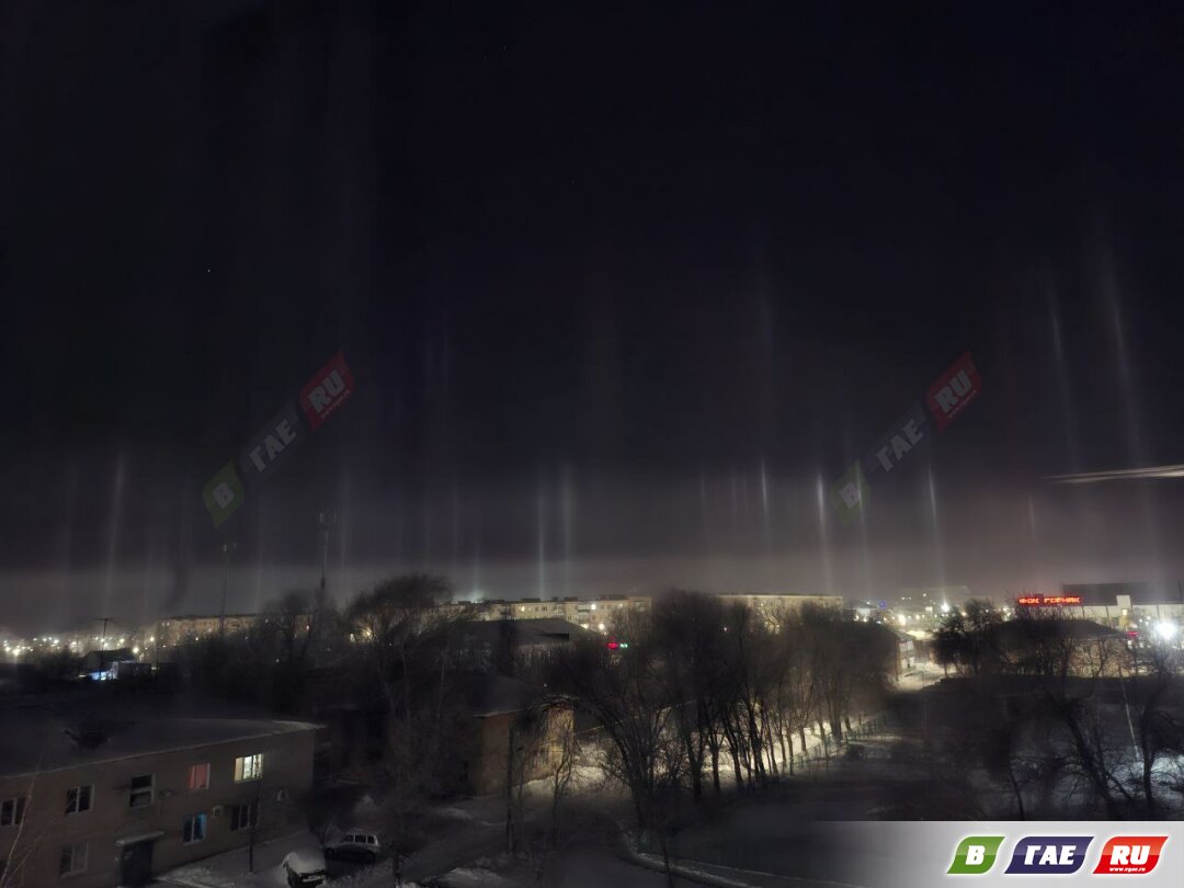 Завораживающее оптическое явление наблюдали гайчане прошедшей ночью 27 января. Световые столбы вытянулись вертикально над горизонтом. Явление для Оренбуржья редкое!