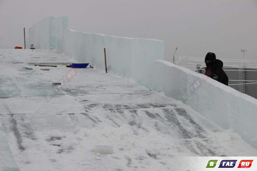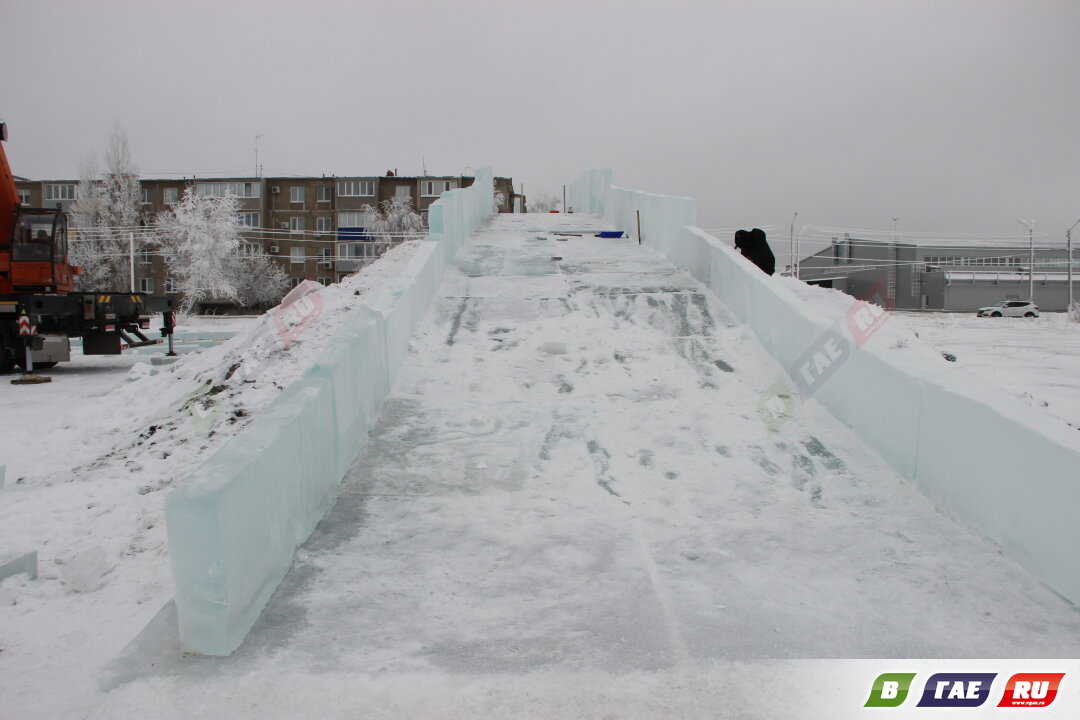 В Ледовом городке кипит работа! Уже появился символ наступающего 2026 года. Обретает четкие очертания ледяная горка, возле елки - цифры. Подаренная гайчанкой елка стоит, украшенная снегом.