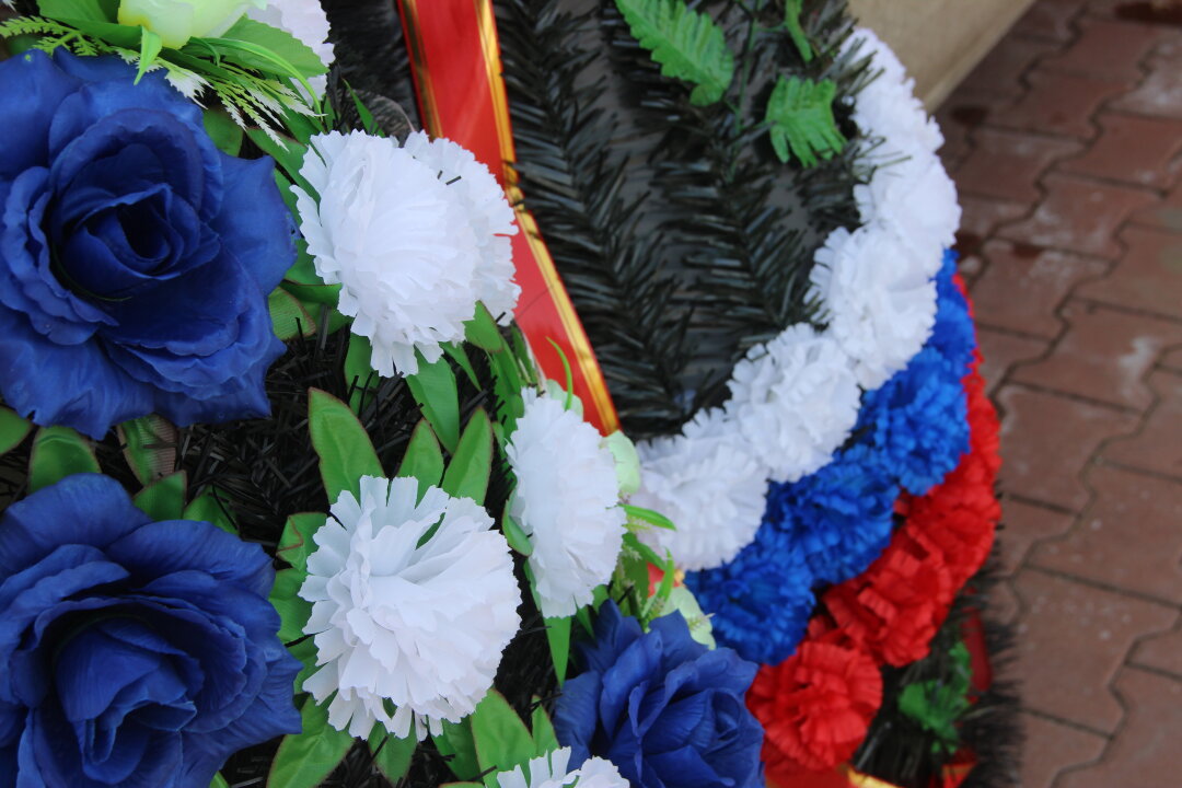 Память воина почтили минутой молчания, родным передан на вечное хранение флаг России.