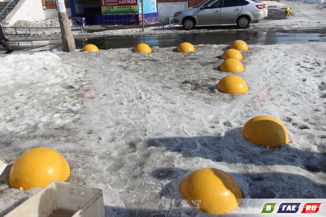 Желтые бетонные полусферы, которые устанавливают для предотвращения парковки, впервые появились в Гае возле ДК горняков. Они уже себя зарекомендовали: возле ступеней ДК горняков никогда не теснятся автомобили.