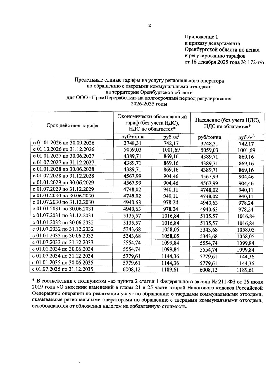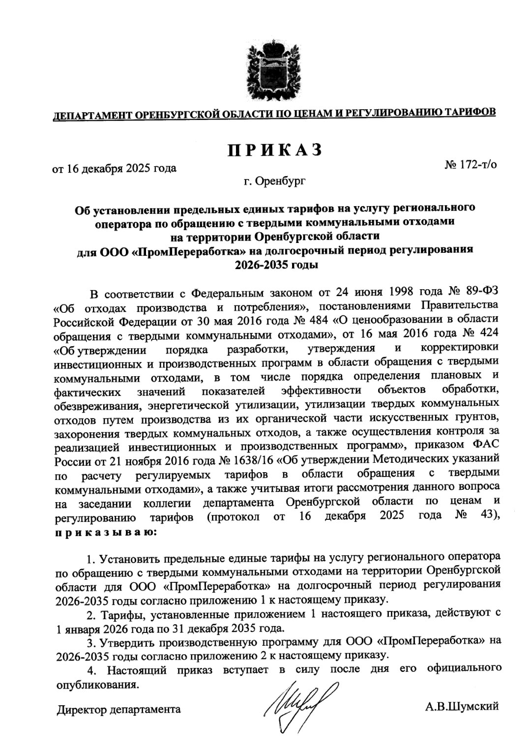 В Оренбургской области в 2026 году стоимость услуг регоператора по вывозу твердых коммунальных отходов вырастет сразу на 35%. Приказ об установлении предельных тарифов на следующий год подписан директором департамента Оренбургской области по ценам и регулированию тарифов 16 декабря. Документ закрепляет максимальные значения платы за вывоз мусора и определяет динамику ее изменения на ближайшее десятилетие.