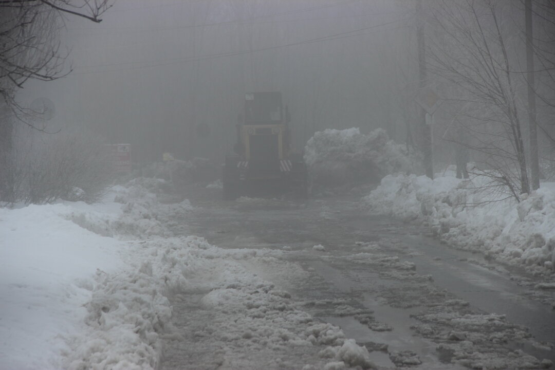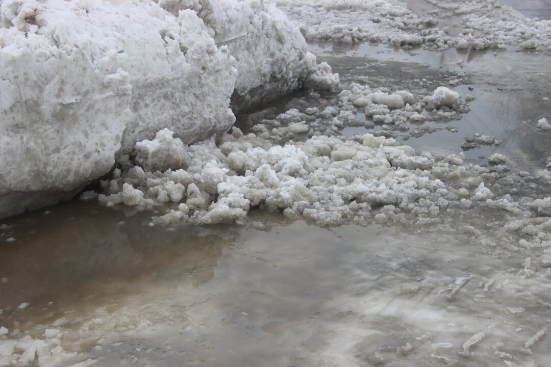 Накануне, в туманное утро, на ул. Филярчука - ул. Орской внезапно появились резкие приметы весны: лужи на дороге, снежное месиво. Но эти приметы оказались опасными: случился порыв трубы.