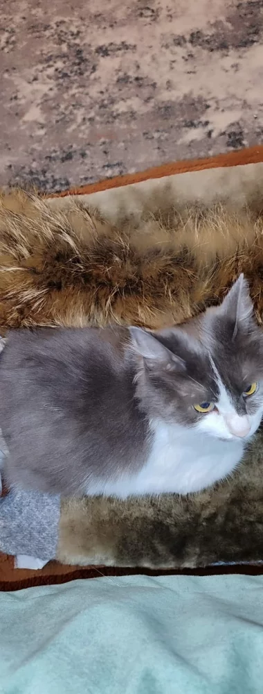 Ищем кошку серо-белого окраса с жёлтыми глазами.