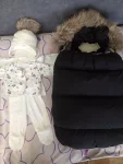 Продам зимний тёплый конверт, натуральный мех (овчина), комбенизон, шапочка и лёгкий костюмчик.