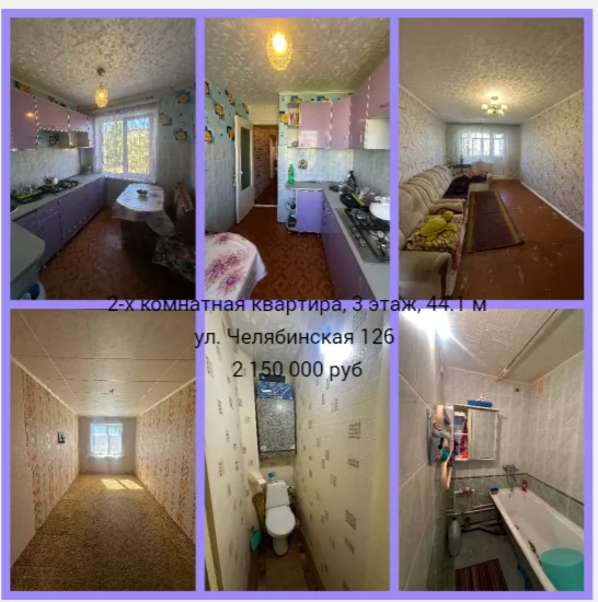 - двухкомнатная квартира, на 3 этаже. Площадь 44 кв.м. ул. Челябинская 126