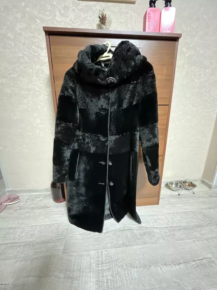 Шуба б/ у в идеальном состоянии, носилась мало. Облегчённый мутон, с капюшоном, без потёртостей. Размер 46