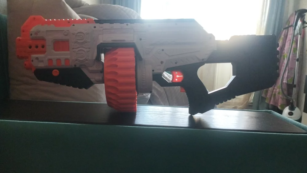 Бластэр на батарейках, новый,в барабан входит 30 мягких пуль.Покупали в детском мире.
