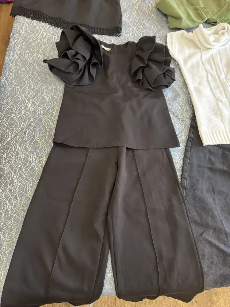 Костюм 2ка нарядный черного цвета - брюки и блузка рукав-фонарик.