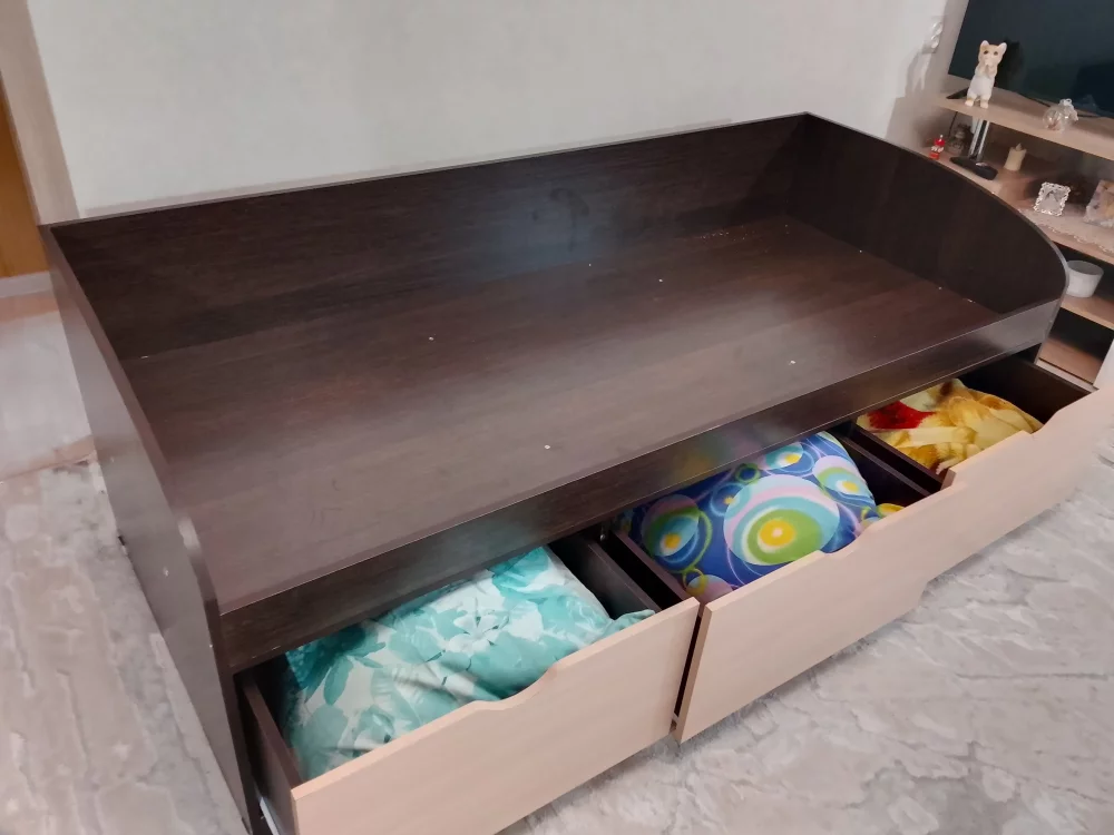 Кровать в отличном состоянии. Следов, сколов нет. Новый упругий матрас идет в комплекте. Размер 90*200см, плюс два глубоких ящика для хранения