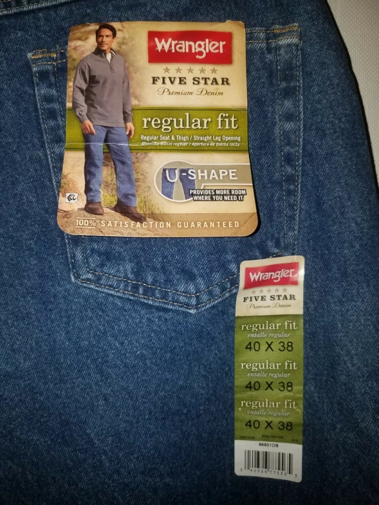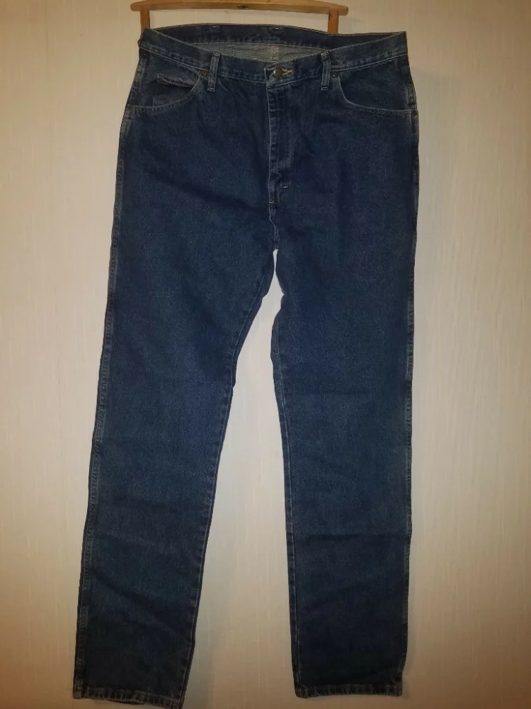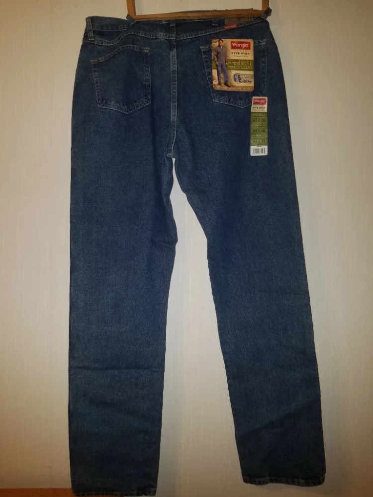 Новые джинсы темно-синие Wrangler 5 star regular fit U-shape.100% оригинал, 100% коттон. Заказывал из штатов, размер мне не подошёл. Размеры у них такие, как на фото, если перевести в сантиметры, то длина внутреннего шва 95 см, ширина полупояса 50 см, глубина 37. Не носил, даже не одевал. Если вам нужны такие или есть вопросы, то звоните или пишите.