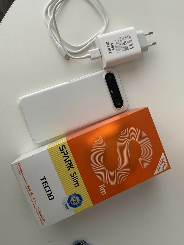 Продам Смартфон Tecno Spark Slim Ростест (EAC) 8/256 ГБ, белый. Куплен 18.12.25, не подошел. Чехол и стекло в комплекте.Рекомендации
