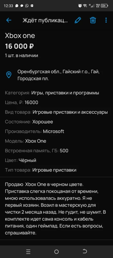 Продам Xbox one 16 000 руб
