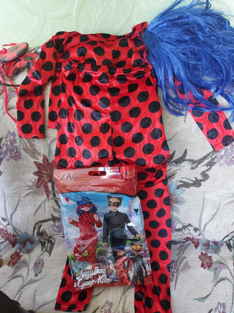 Продам костюм Леди Баг на девочку 9-10 лет, рост 140 см. В отличном состоянии. В комплект входит: лосины с кофточкой, маска, сумочка, синий парик.Рекомендации