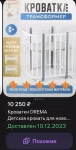 Продам детскую кроватку в идеальном состоянии. С матрасом, маятником, бортиками и непромокаемым намотрасником. Торг.