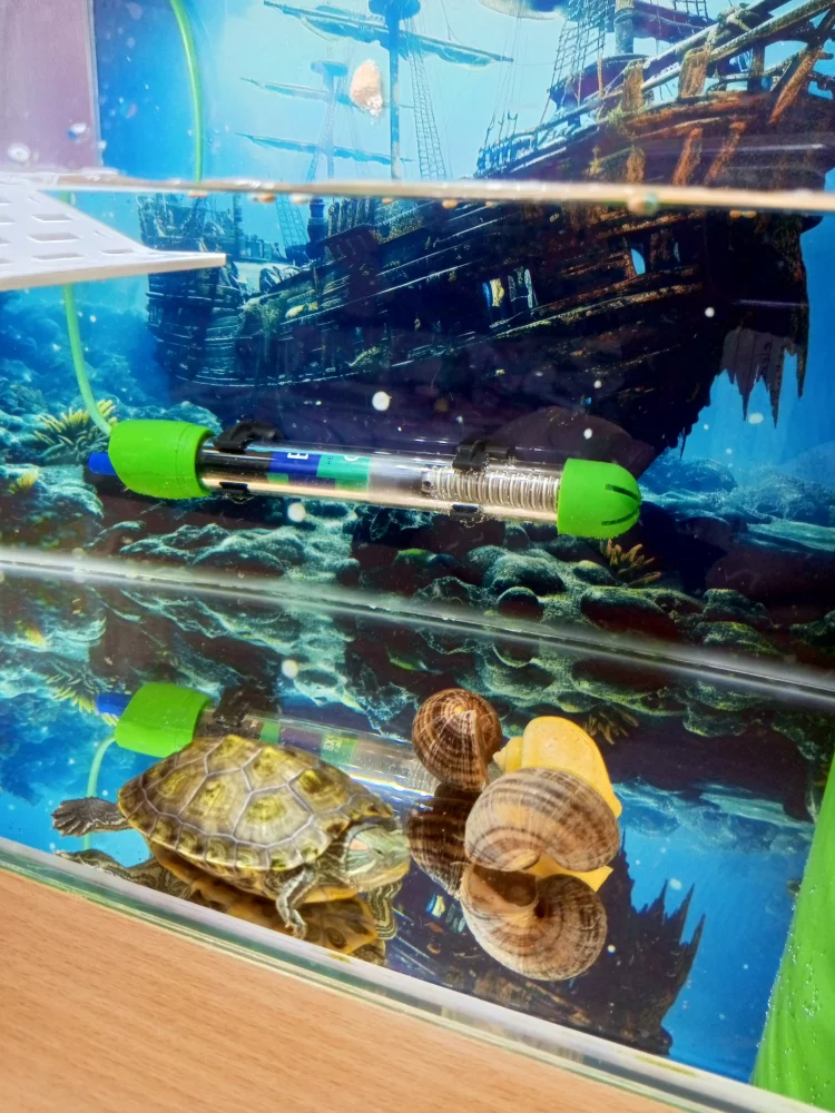 Отдам черепашку красноухую и улиток ампулярий.