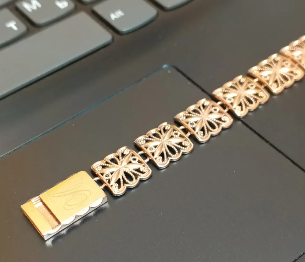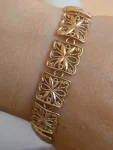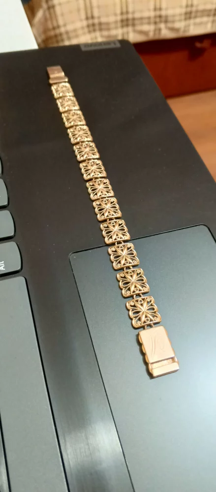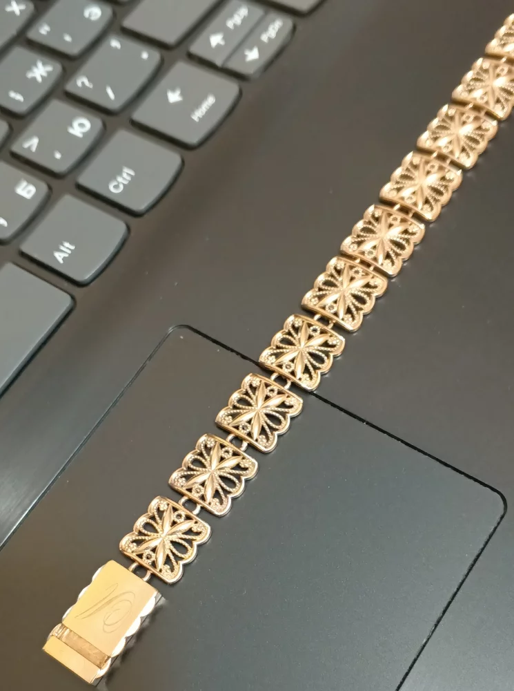 Женский золотой массивный браслет вес 21гр..проба 585-ая. Длина 20,8см в закрытом виде 19,3см.Ширина 1,2см.С мощным, надежным замком коробочка. Не потеряете 100%.Золото высочайшего качества любые проверки ломбард или ювелирная мастерская подъеду проверим без проблем. Проба на изделии имеется 585.Рассрочки и торга нет.Совсем нет.Рекомендации