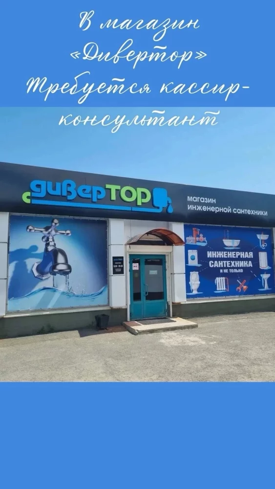 Открыта вакансия : Продавец-консультант в магазин сантехники "Дивертор" График работы 2/2, официальное трудоустройство, питание за счет организации, достойная зарплата, дружный коллектив.Все подробности по телефону или по адресу Орская 111Б (Гайский рынок)