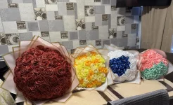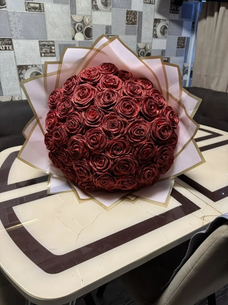 Хороший подарок из атласных лент, яркий красивый букет На любой праздник.Количество цветов в букете цена: