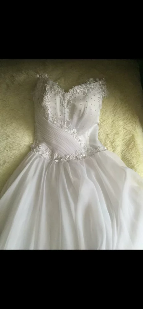Продаётся красивое свадебное платье, состояние нового, размер от 44 по 48, регулируется шнуровкой по бокам, в комплекте фата и перчатки, дополнительной стирки и чистки не требуется.Рекомендации