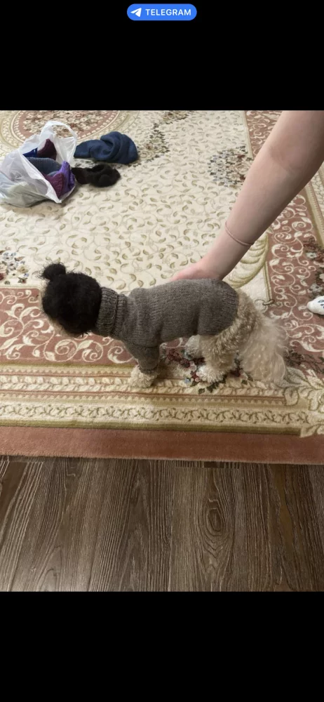 Продам свитер для собачки небольшой породы. Ручная работа. Пряжа натуральная. Размеры: длина переда 22см (без воротника), длина спинки 26см., самая широкая часть туловища обхват 28-40см., самая узкая снизу обхват 28-30см Цена 1500 руб.Фото с собачкой для примера. Шапочка 800 рубРекомендации