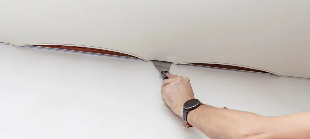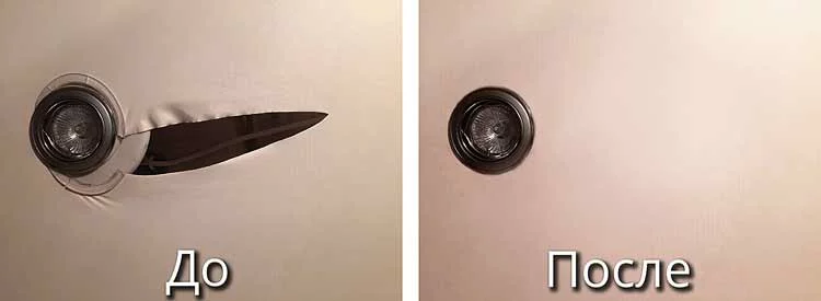 Ремонт натяжных потолков в Гае включает устранение порезов, проколов и слив воды. Для ПВХ-полотен используют маскировку наклейками, установку дополнительных светильников или клей, для тканевых — заплатки с покраской. Ремонт порезов рядом с багетом (до 15 см) возможен.