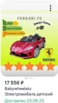 Продам красную феррари. Запуск с ключа, музыка с флешки, управление через педаль + пульт управления для родителя. Ездили мало, состояние хорошее, покупали 3г назад, стояла без зарядки (аккум под замену) покупали за 17к на вб, продаю за 6.000₽Рекомендации
